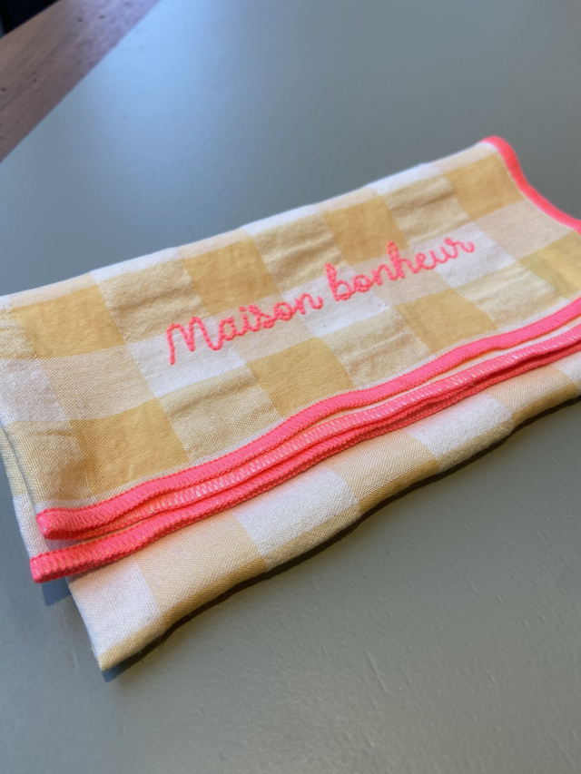 Serviette de table - Vichy jaune - broderie Maison Bonheur
